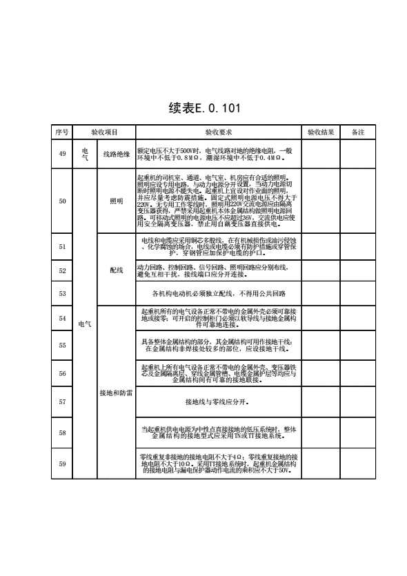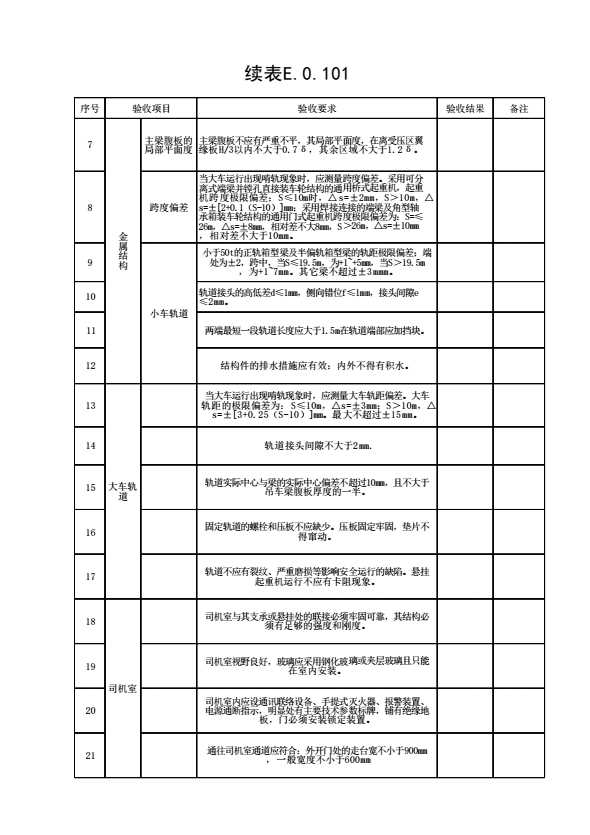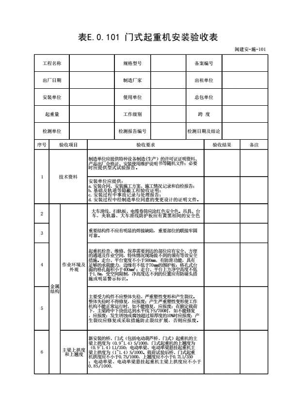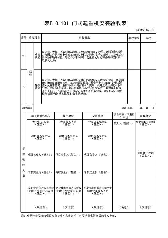 表格名称:表E.0.101 门式起重机安装验收表
