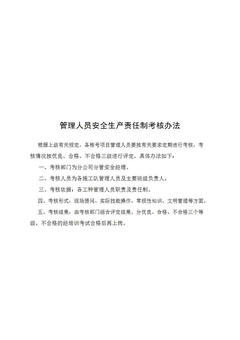 管理人员安全生产责任制考核办法