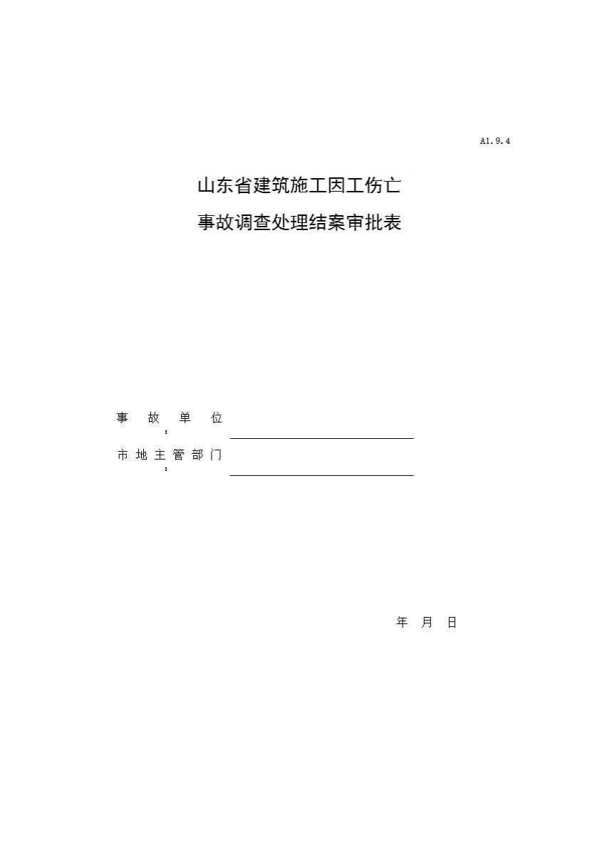 表格名称:山东省建筑施工因工伤亡事故调查处理结案审批表