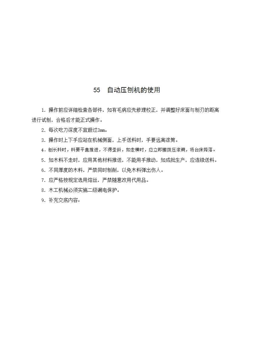 表格名称:55 自动压刨机的使用