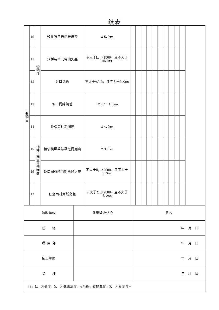 表格名称:QCSG 表 3-7.6.5 构件预拼装工程检验批质量验收记录表