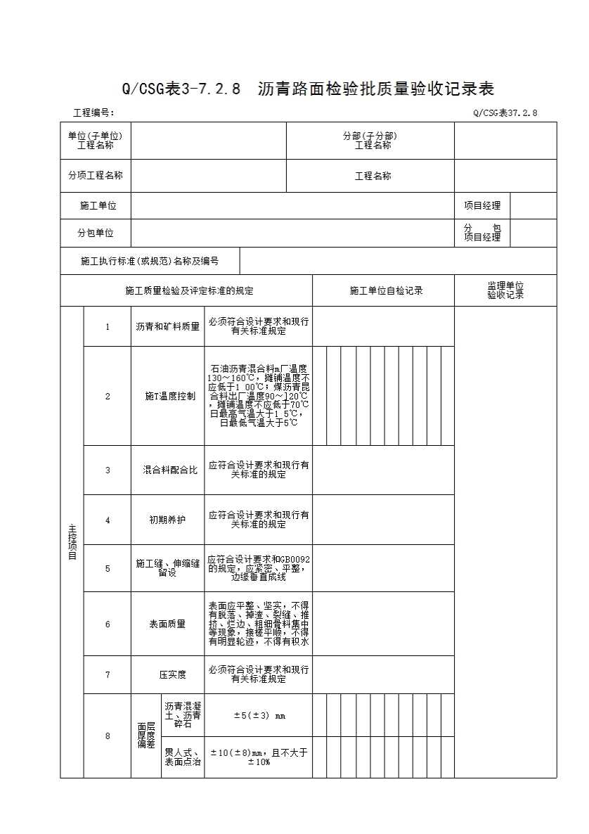 QCSG 表 3-10.7.2 沥青路面检验批质量验收记录表