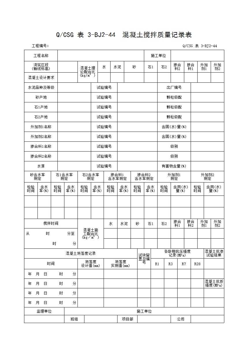 表格名称:QCSG 表 3-BJ2-44 混凝土搅拌质量记录表