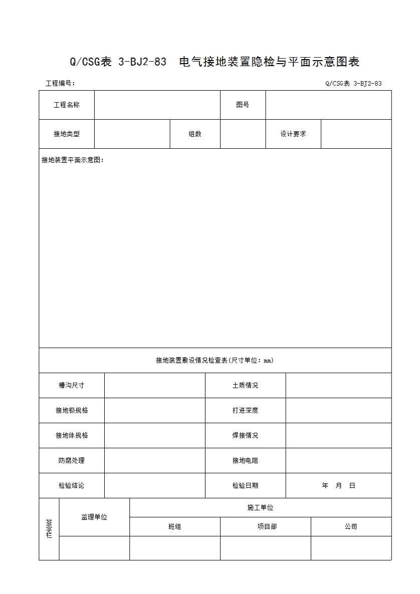 表格名称:QCSG 表 3-BJ2-83 电气接地装置隐检与平面示意图表
