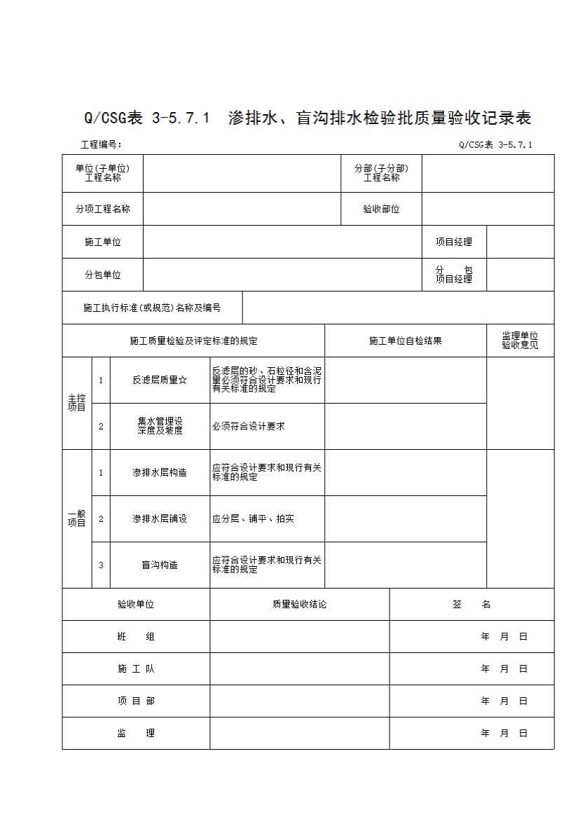 QCSG 表 3-5.7.1 渗排水、盲沟排水检验批质量验收记录表