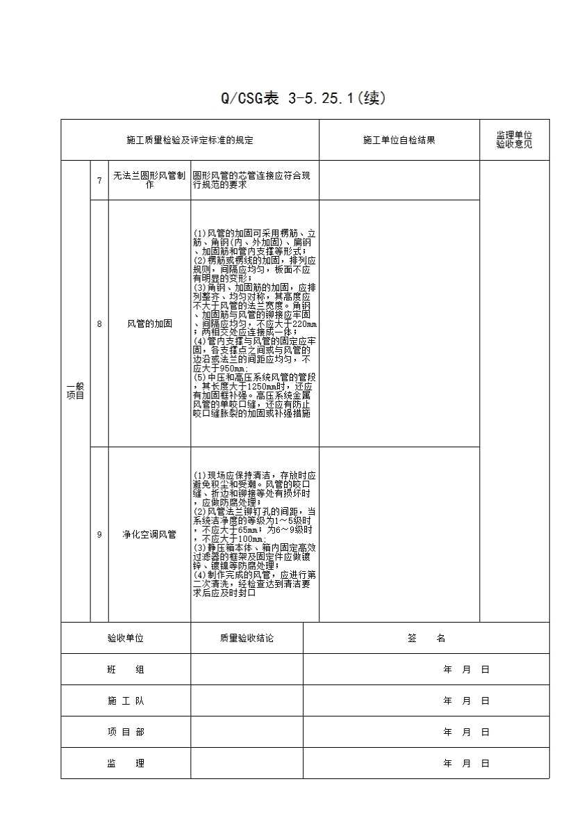 表格名称:QCSG 表 3-5.25.1 风管与配件制作(金属风管)检验批质量验收记录表