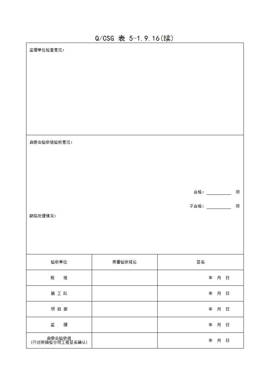 QCSG 表 5-1.9.16 110kV______线路间隔通流试验 分项工程质量验收记录表