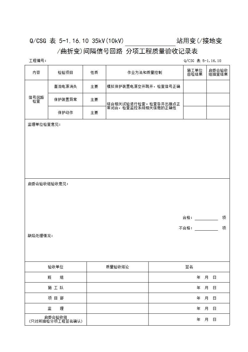 QCSG 表 5-1.16.10 35kV(1OkV)______站用变(接地变曲折变)间隔信号回路 分项工程质量验收记录表