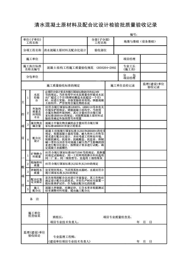 表格名称:清水混凝土原材料及配合比设计检验批质量验收记录