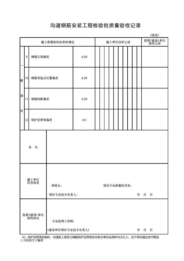 表格名称:沟道钢筋安装工程检验批质量验收记录