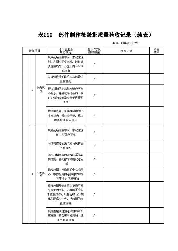 表格名称:010206010201 部件制作检验批质量验收记录