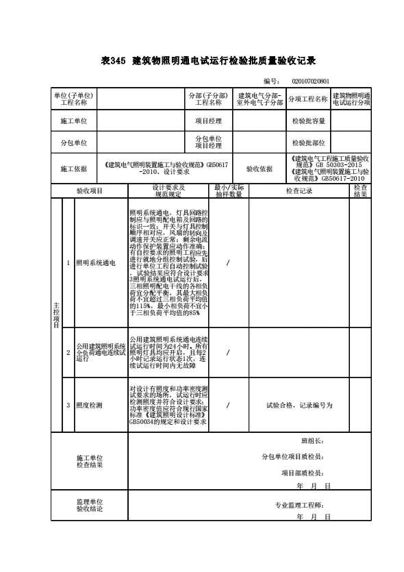 020107020801 建筑物照明通电试运行检验批质量验收记录