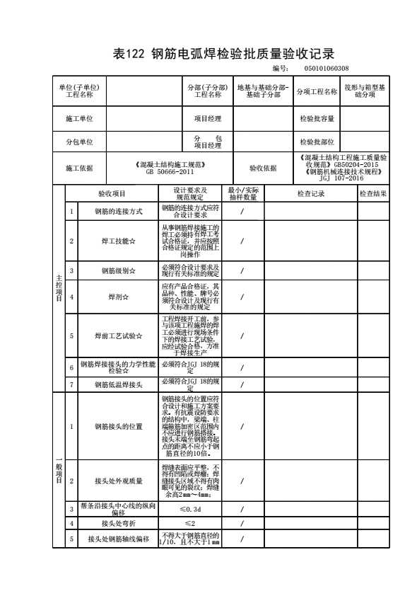 表格名称:050101060308 钢筋电弧焊检验批质量验收记录