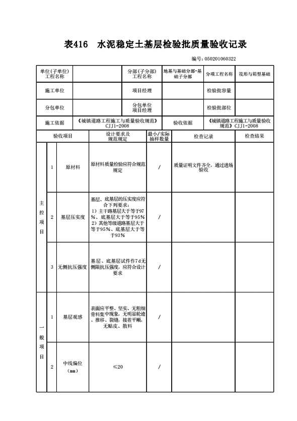 表格名称:050201060322 水泥稳定土基层检验批质量验收记录
