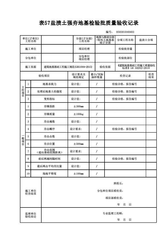 表格名称:050301040403 盐渍土强夯地基检验批质量验收记录