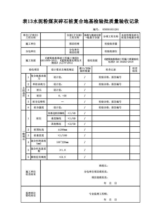 表格名称:050501031201 水泥粉煤灰碎石桩复合地基检验批质量验收记录