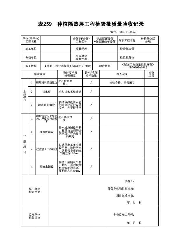 表格名称:080104020501 种植隔热层工程检验批质量验收记录