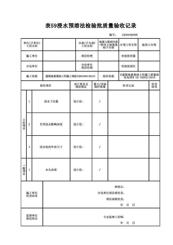 表格名称:130101040405 浸水预溶法检验批质量验收记录
