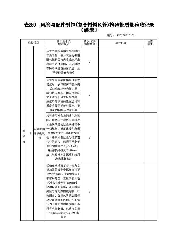 表格名称:130206010103 风管与配件制作(复合材料风管)检验批质量验收记录