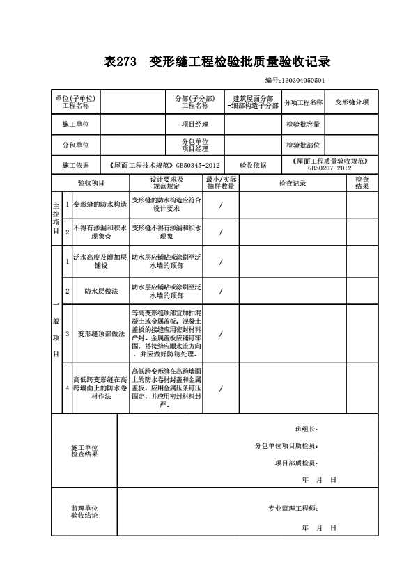 130304050501 变形缝工程检验批质量验收记录