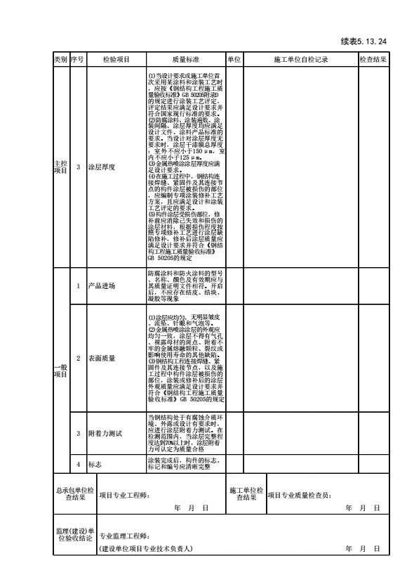 表格名称:[符合表5.13.24]表5.14.8 型钢防腐涂装检验批质量验收记录