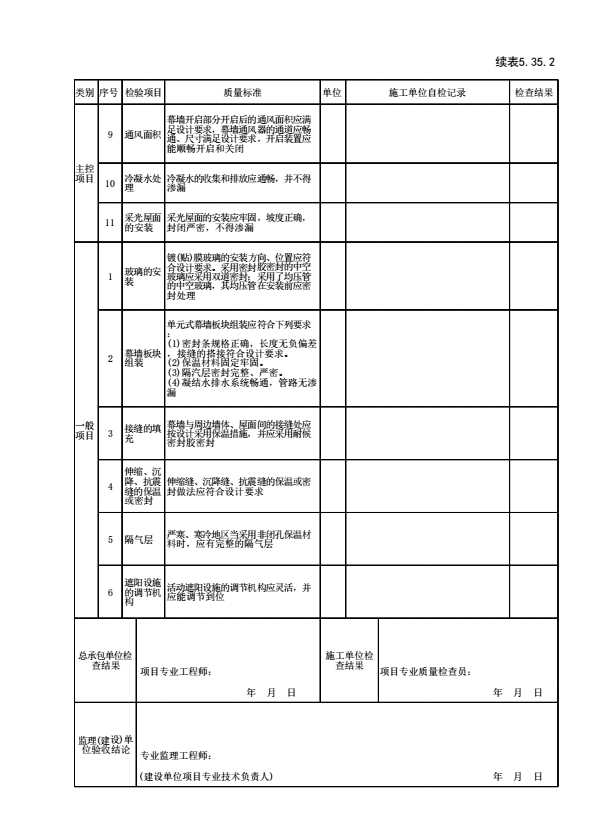 表5.35.2 幕墙节能工程检验批质量验收记录