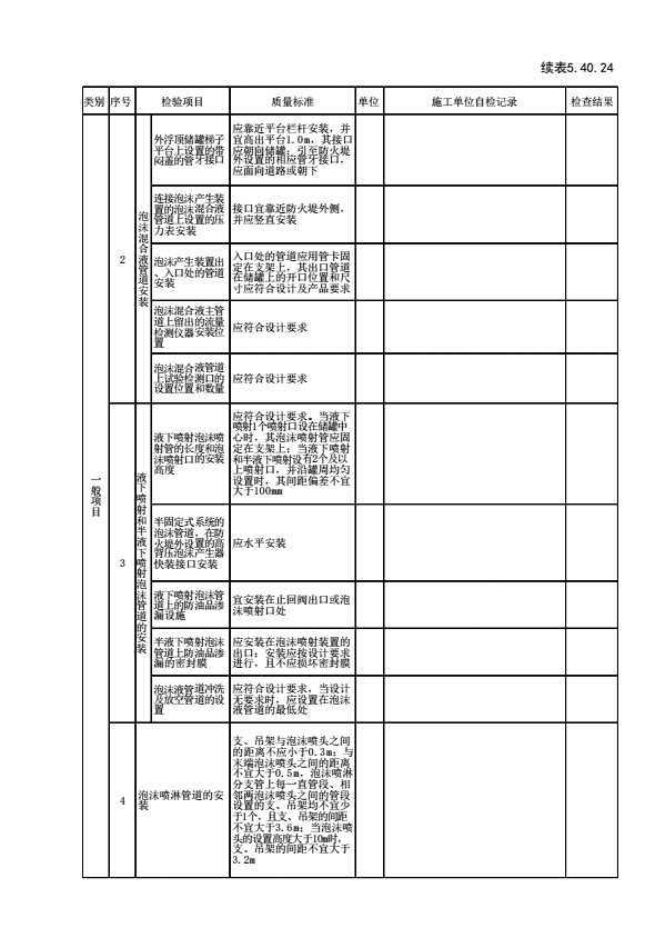 表格名称:表5.40.24 泡沫灭火系统管道、阀门和泡沫消火栓安装检验批质量验收记录