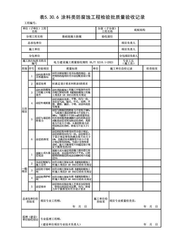 表格名称:[符合表5.30.6]表6. 6.7基础防腐涂料涂装施工检验批质量验收记录