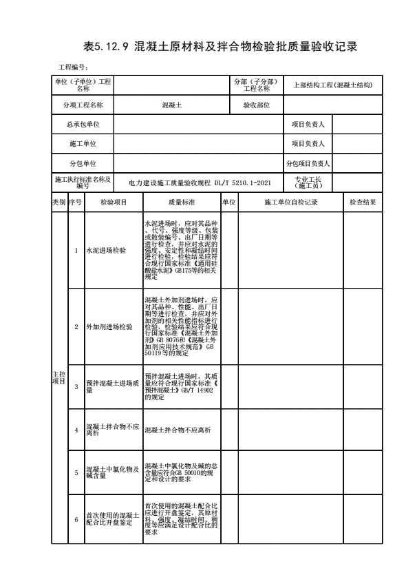 表格名称:[符合表5.12.9]表6. 9.5混凝土原材料及配合比设计检验批质量验收记录