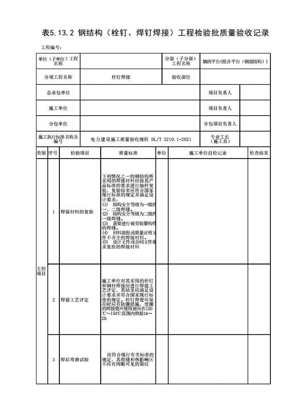表格名称:[符合表5.13.2]表6.10.42组合平台(钢混结构)栓钉焊接工程检验批质量验收记录