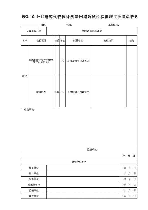 表格名称:表3.10.4-14 电容式物位计测量回路调试检验批施工质量验收表