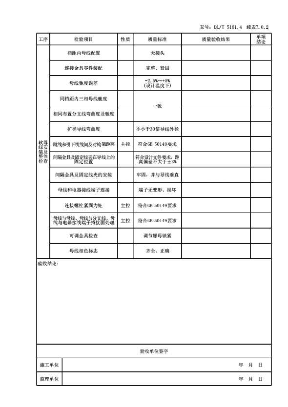 表格名称:表7.0.2 软母线安装分项工程质量验收表