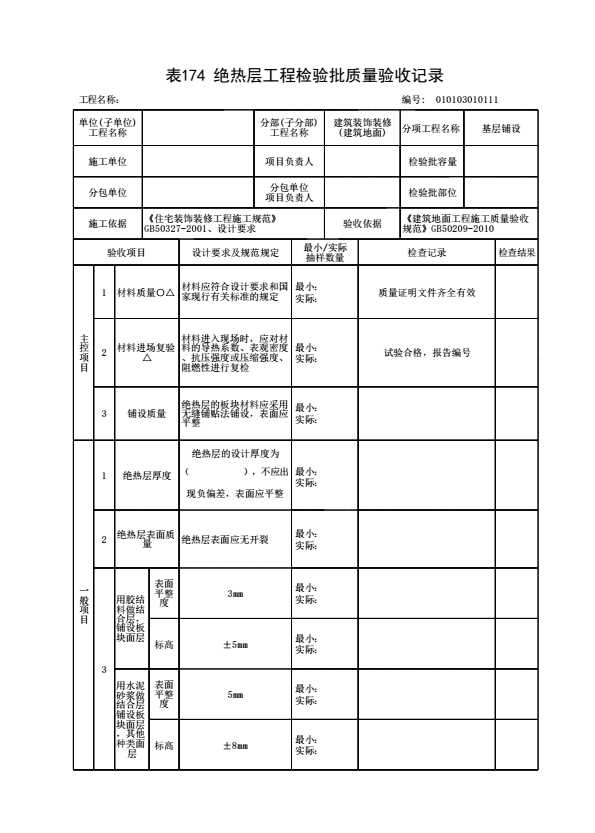 表格名称:010103010111 绝热层工程检验批质量验收记录