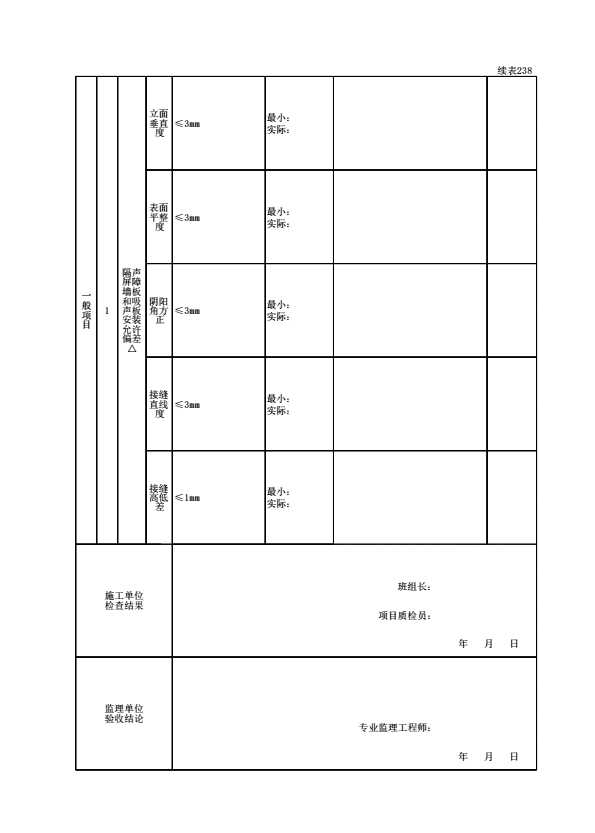 表格名称:010203140101 隔音屏障墙板及接地安装质量验收记录