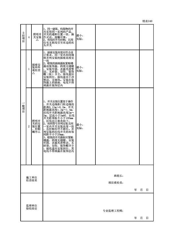 表格名称:010207020801 开关、插座、风扇安装检验批质量验收记录