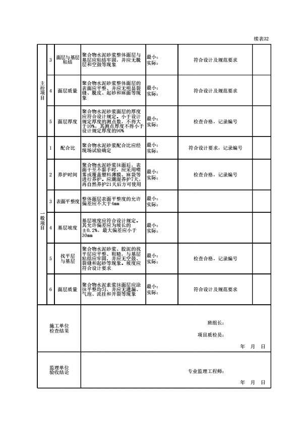 表格名称:040101061305 聚合物水泥砂浆素浆抹面层检验批质量验收记录