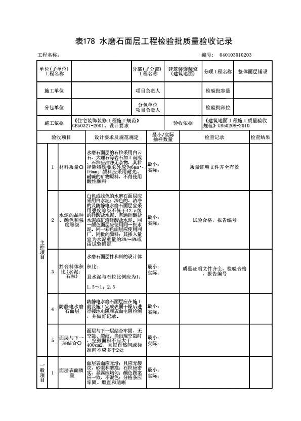 表格名称:040103010203 水磨石面层工程检验批质量验收记录