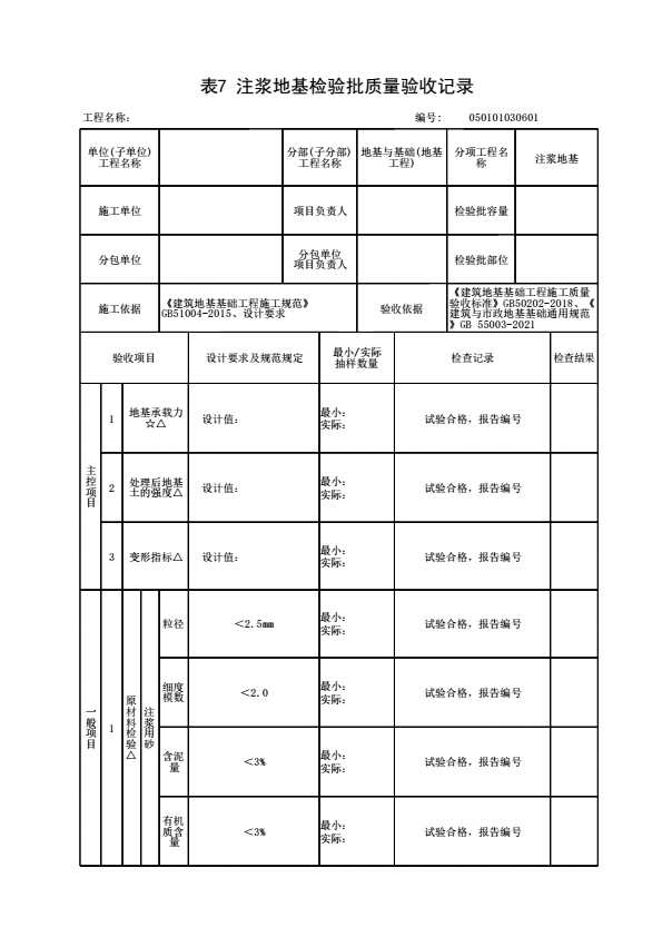 表格名称:050101030601 注浆地基检验批质量验收记录