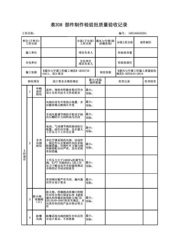 表格名称:100106030201 部件制作检验批质量验收记录