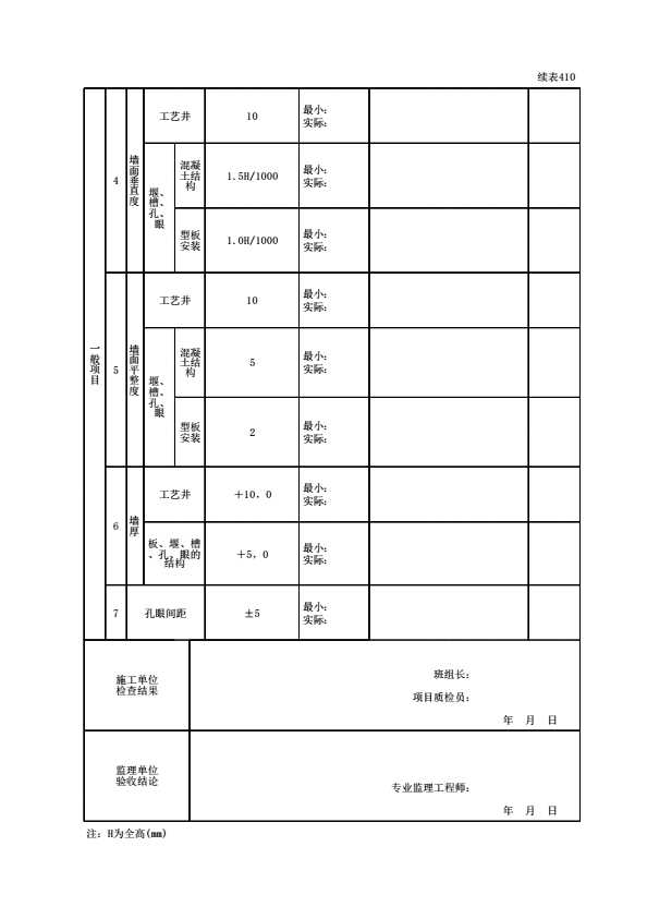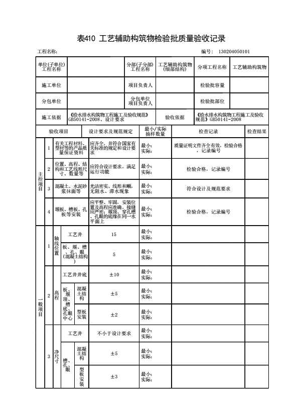 表格名称:130204050101 工艺辅助构筑物检验批质量验收记录