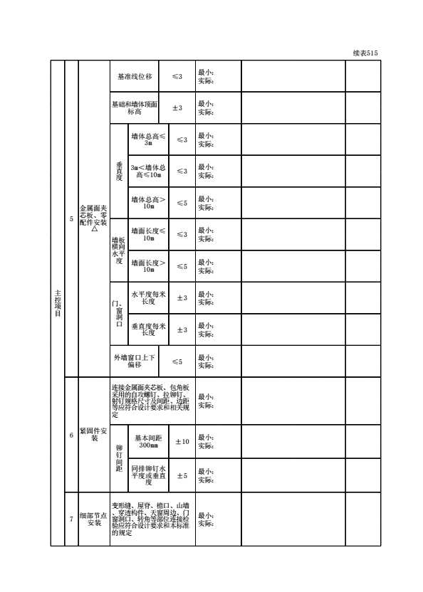 表格名称:140202050104 金属面绝热夹芯板检验批质量验收记录