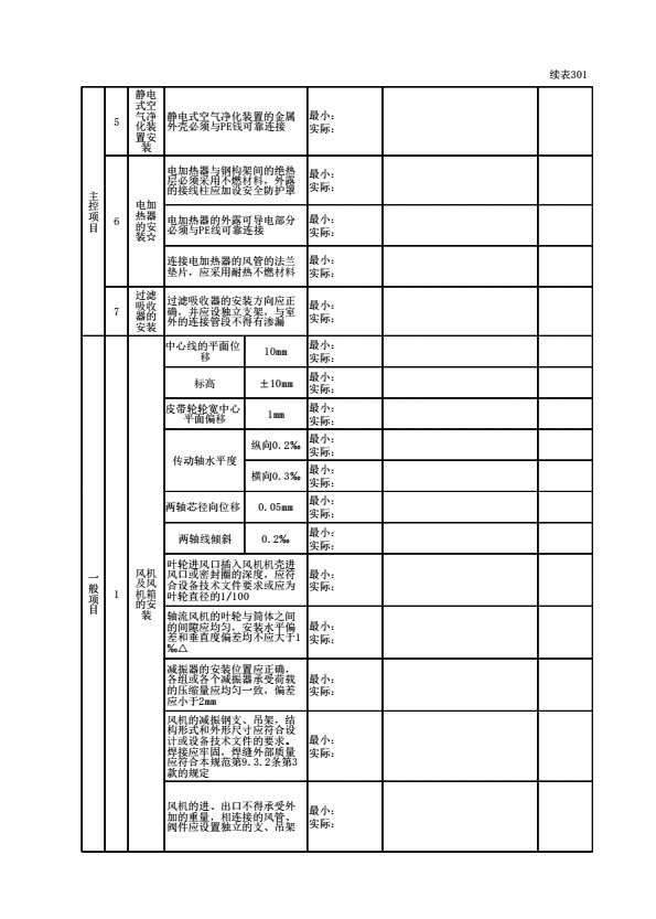 表格名称:140206020401 风机与空气处理设备安装检验批质量验收记录