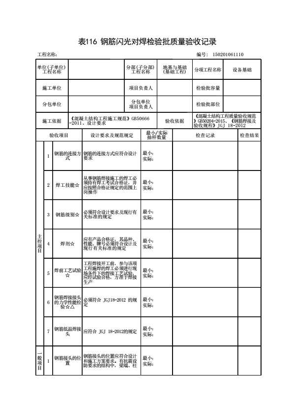 表格名称:150201061110 钢筋闪光对焊检验批质量验收记录