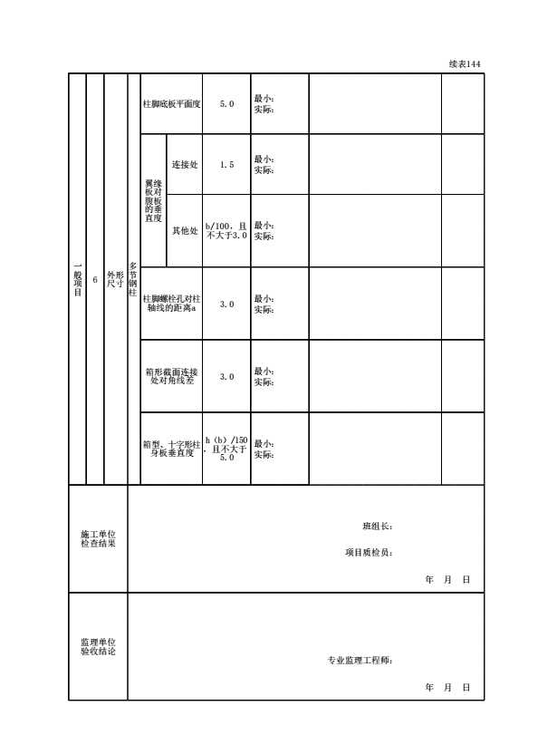 表格名称:150302030401 钢构件(单节、多节钢柱)组装检验批质量验收记录