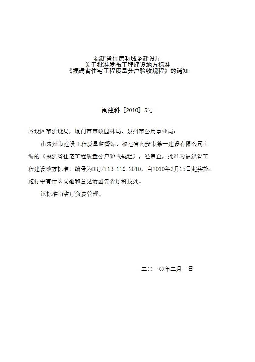 福建省住宅工程质量分户验收规程(DBJ T13-119-2010)