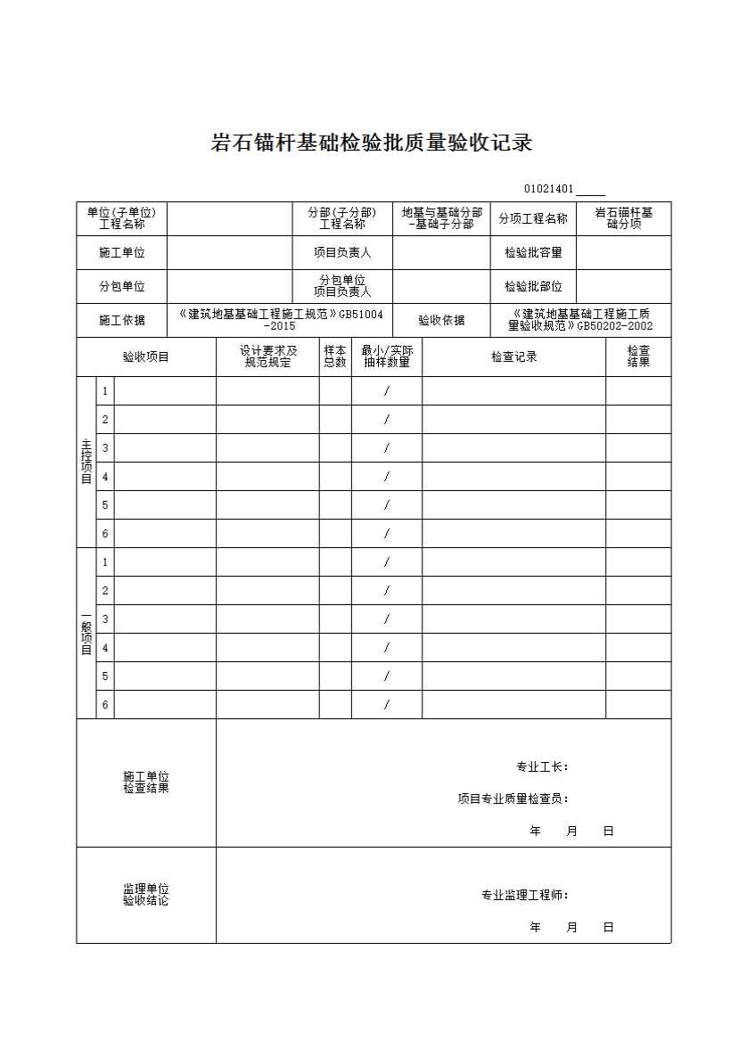 表格名称:01021401_岩石锚杆基础检验批质量验收记录