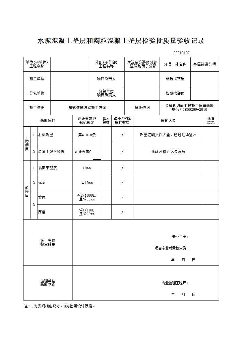 水泥混凝土垫层和陶粒混凝土垫层检验批质量验收记录