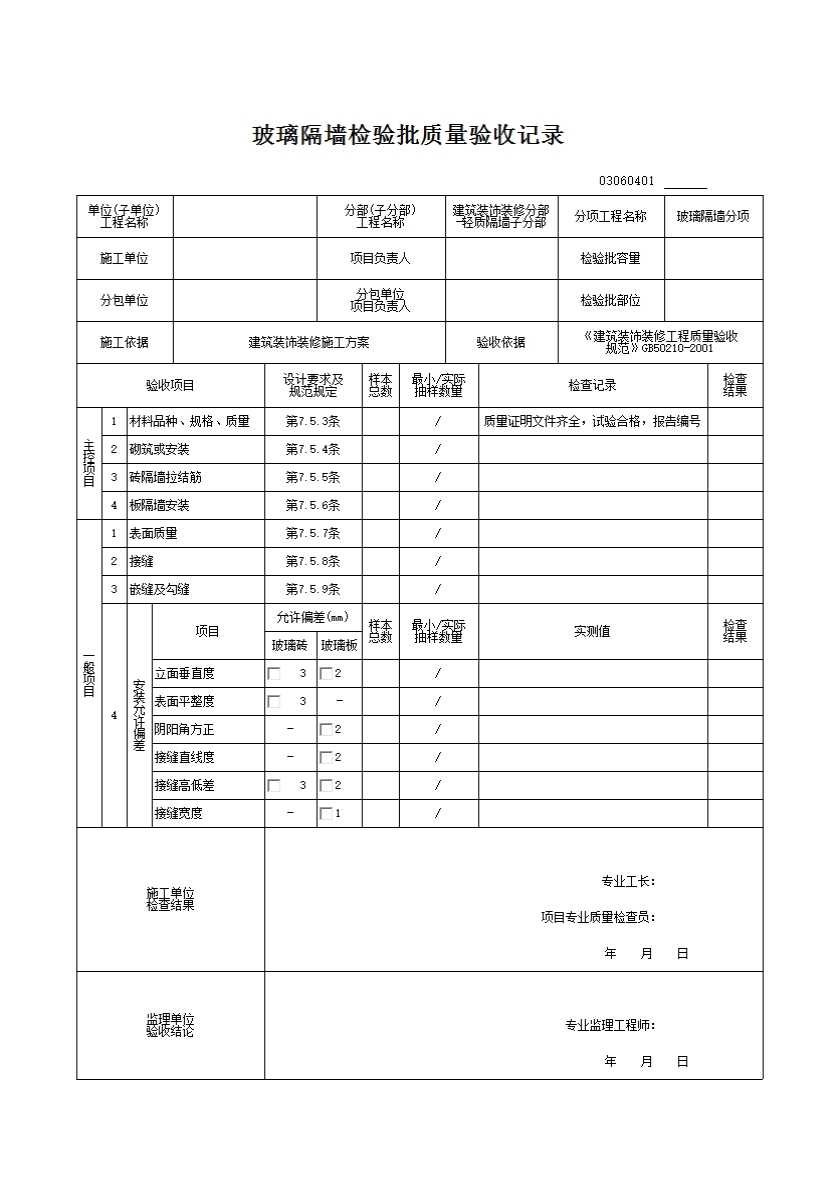 7.5.8 玻璃隔墙接缝应横平竖直玻璃应无裂痕缺损和划痕