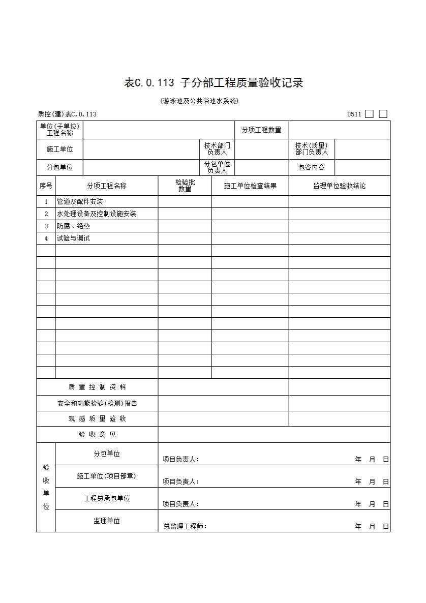 表格名称:游泳池及公共浴池水系统