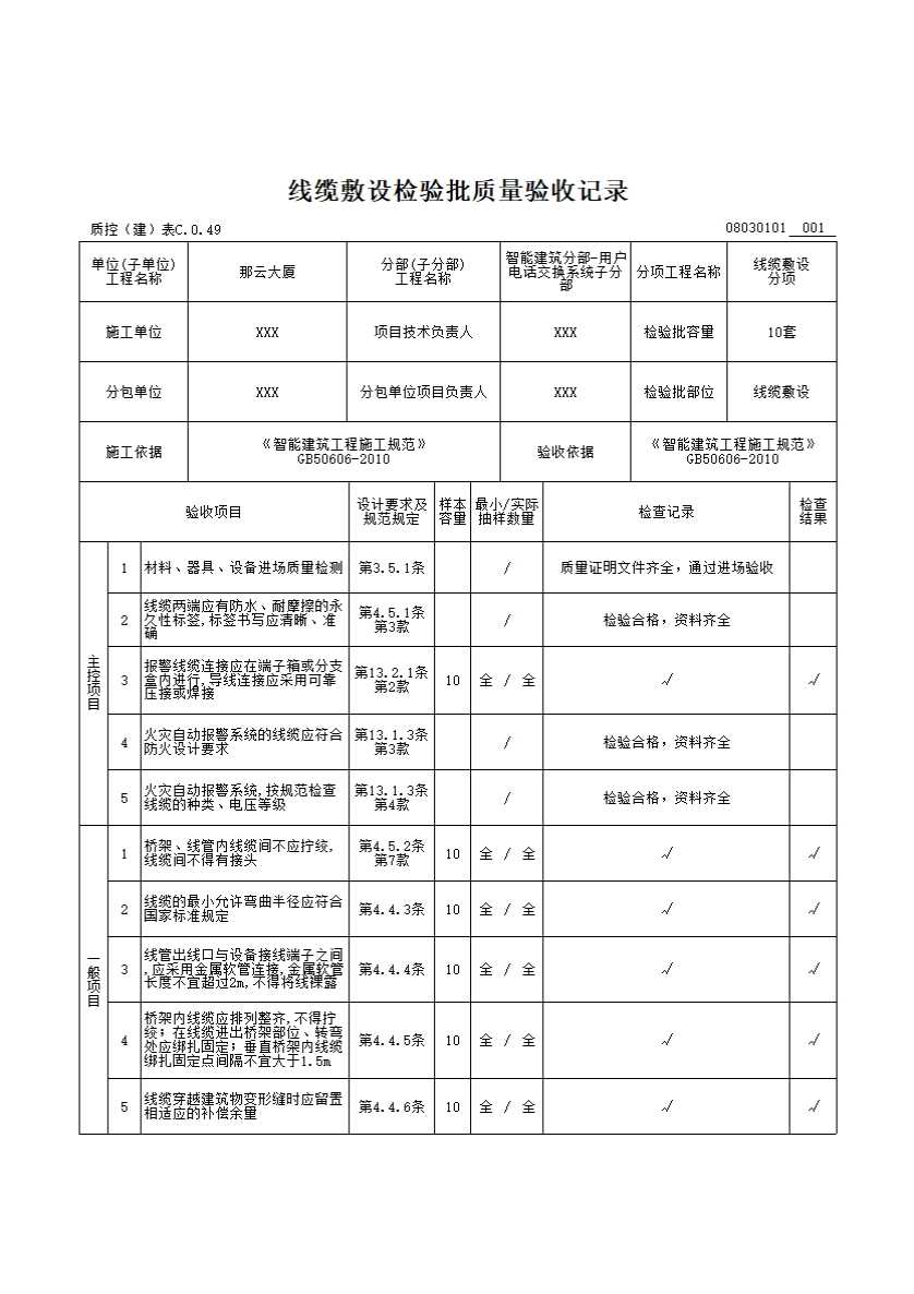 4)应根据现行国家标准《火灾自动报警系统设计规范》GB5016的有关规定,对线缆的种类、电压等级进行检查。